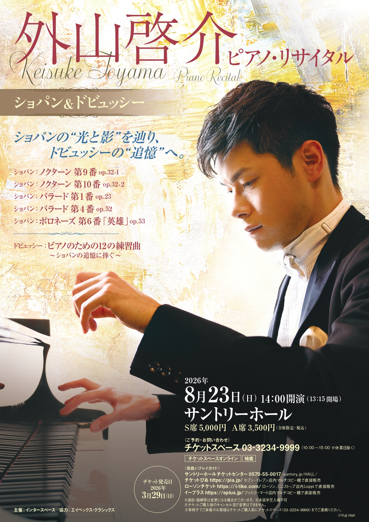 | プログラム | 外山啓介ピアノ・リサイタル~ショパン&ドビュッシー ショパン: |